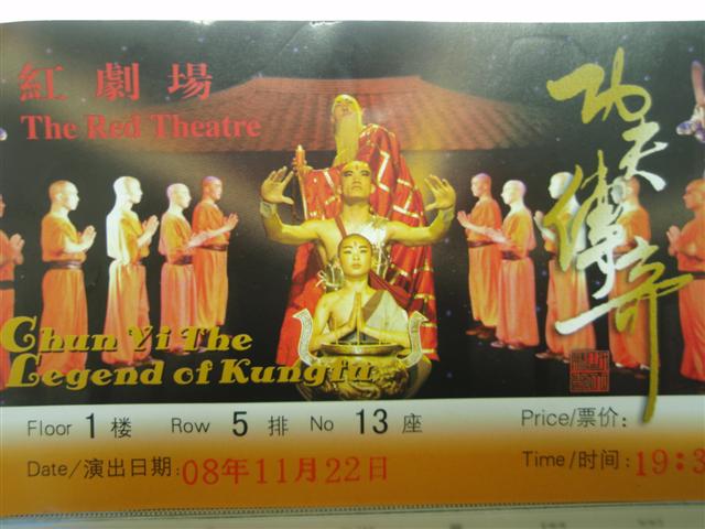 【崇文区紅にある劇場】 【チケット:功夫传奇】