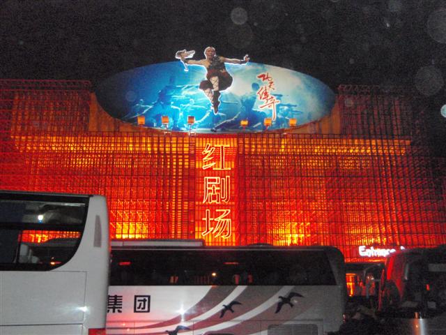 なんかウチの学校は毎月バス旅行とか何かのイベントがあるらしく、今月はその観劇だった2週間前くらいから知らせが掲示板に貼ってあったのだけど、実はこの【功夫伝奇】は私とノリちゃんが北京の日本人向けの雑誌に載っていた記事を観て以来ずっと行きたいと思っていたもので、中々時間が取れない関係で先送りにしていたから学校のイベントで安くで行けるなんてラッキー!ってなタイミングだった。