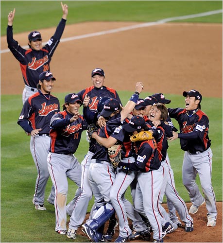 内川の大事な場面での韓国打線のレフト前フライを滑り込んでワンバンで取って2塁に送球アウトにするとか、岩隈の8回までの好投とか、7回中島の勝ち越しヒットとか、その他色々と攻め守りも良かったので、最終的に優勝という当然の結果が出たのだと思う。