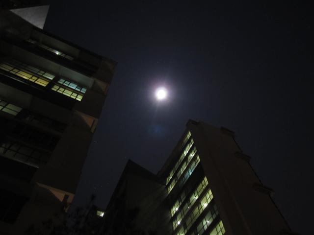 今日は夜久しぶりにブレットと会って五道口でご飯を食べてから帰ってきたんだけど、アパートの近くでビルの間から月が見えて“ハッ”っと息を呑んでしまった。