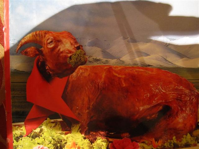 【ヤギの丸焼き!しかもお口にはパセリって…どんな発想よ!】