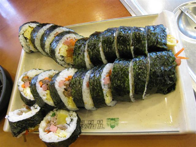 2日目は、昨晩のソルロンタンがお腹に残ってる感があったので、【キンパ】という韓国式のり巻きのブランチにした。