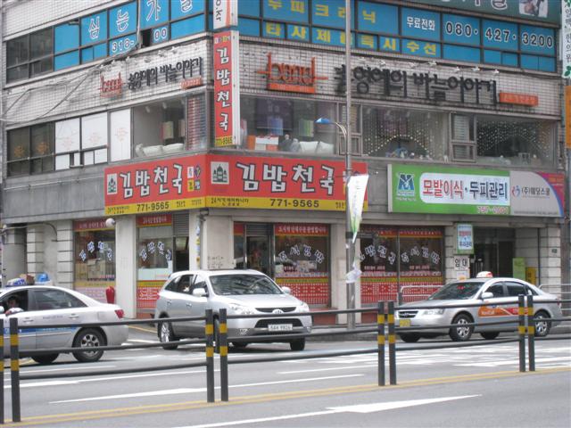 オレンジの看板の「キンパ天国」というお店のキンパが美味しいのでその店で。