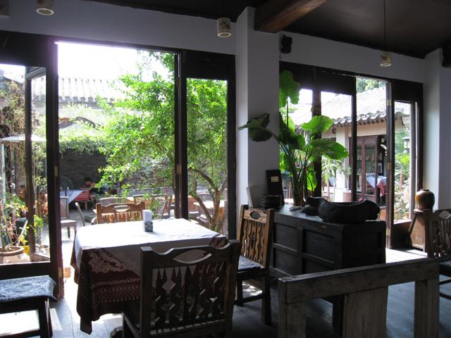 四合院という中国独特の四方を建物で囲まれていて、その中が庭になっているといった様式のレストランだったんだけど、今日は暑かったから庭ではなく屋内の席にすわった。