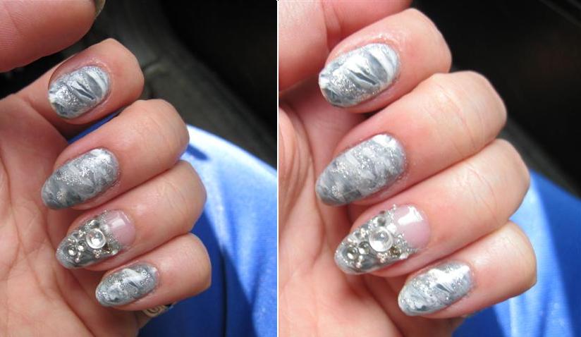 【黒・白を混ぜて灰色のマーブルに銀とストーン ’10.10月Ver.】
